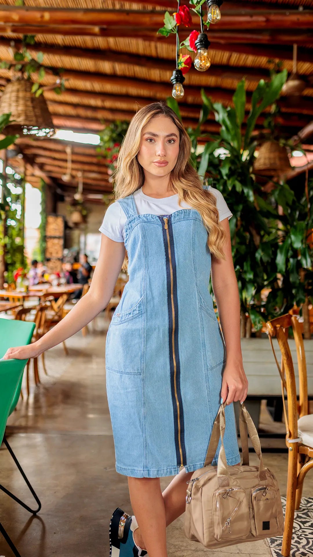 Descubre la braga dama con cierre delantero que realza tu figura con su silueta ajustada. Confeccionada en jean claro, ofrece un estilo moderno y versátil para cualquier ocasión. La modelo luce una talla 8, ideal para quienes buscan comodidad y un ajuste perfecto. Eleva tu look con esta prenda imprescindible.