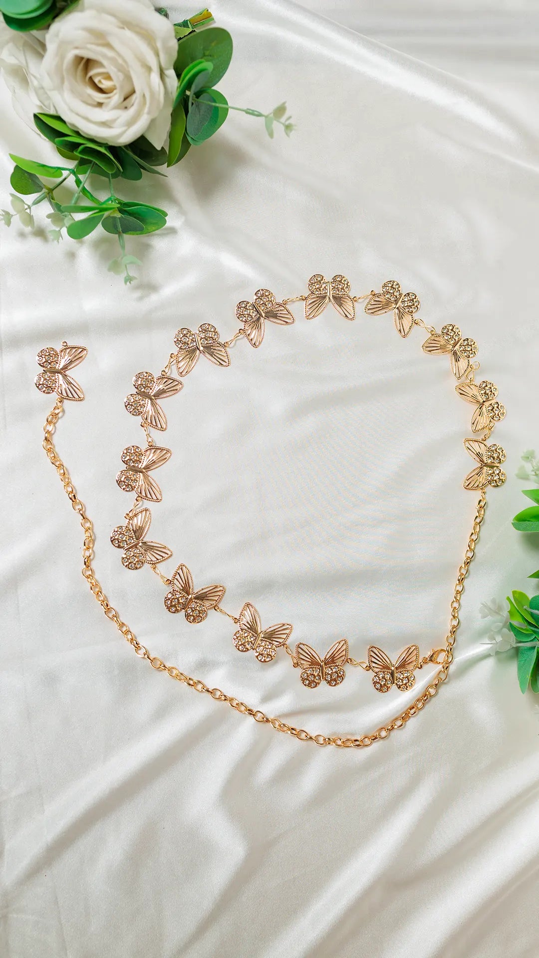 Añade un toque de elegancia a tu estilo con esta correa para dama tipo cadena de mariposas con pedrería. Su diseño delicado y brillante realza cualquier atuendo, combinando sofisticación y feminidad. Perfecta para destacar en cualquier ocasión, esta correa convierte un look sencillo en uno inolvidable.