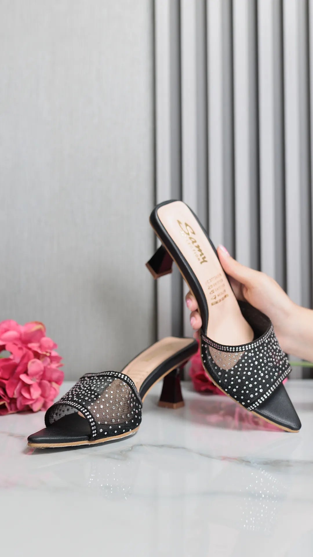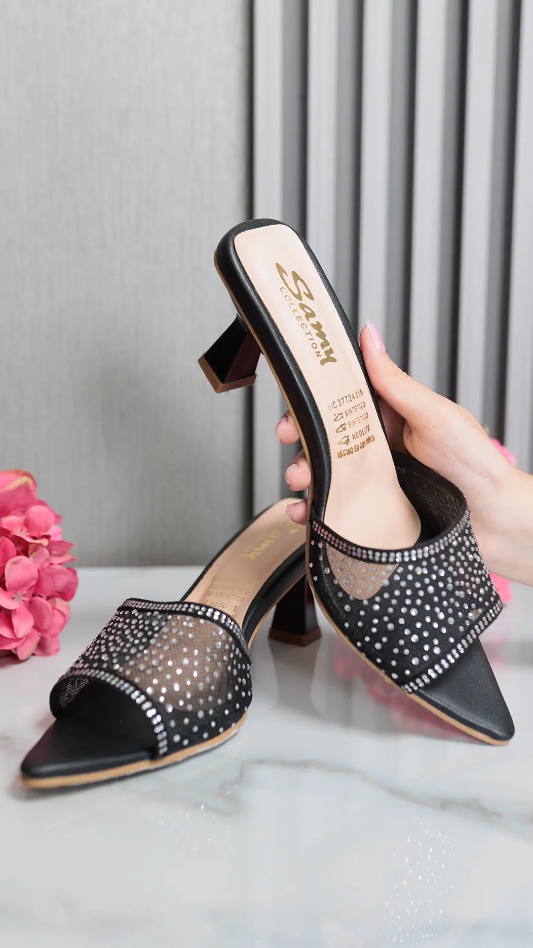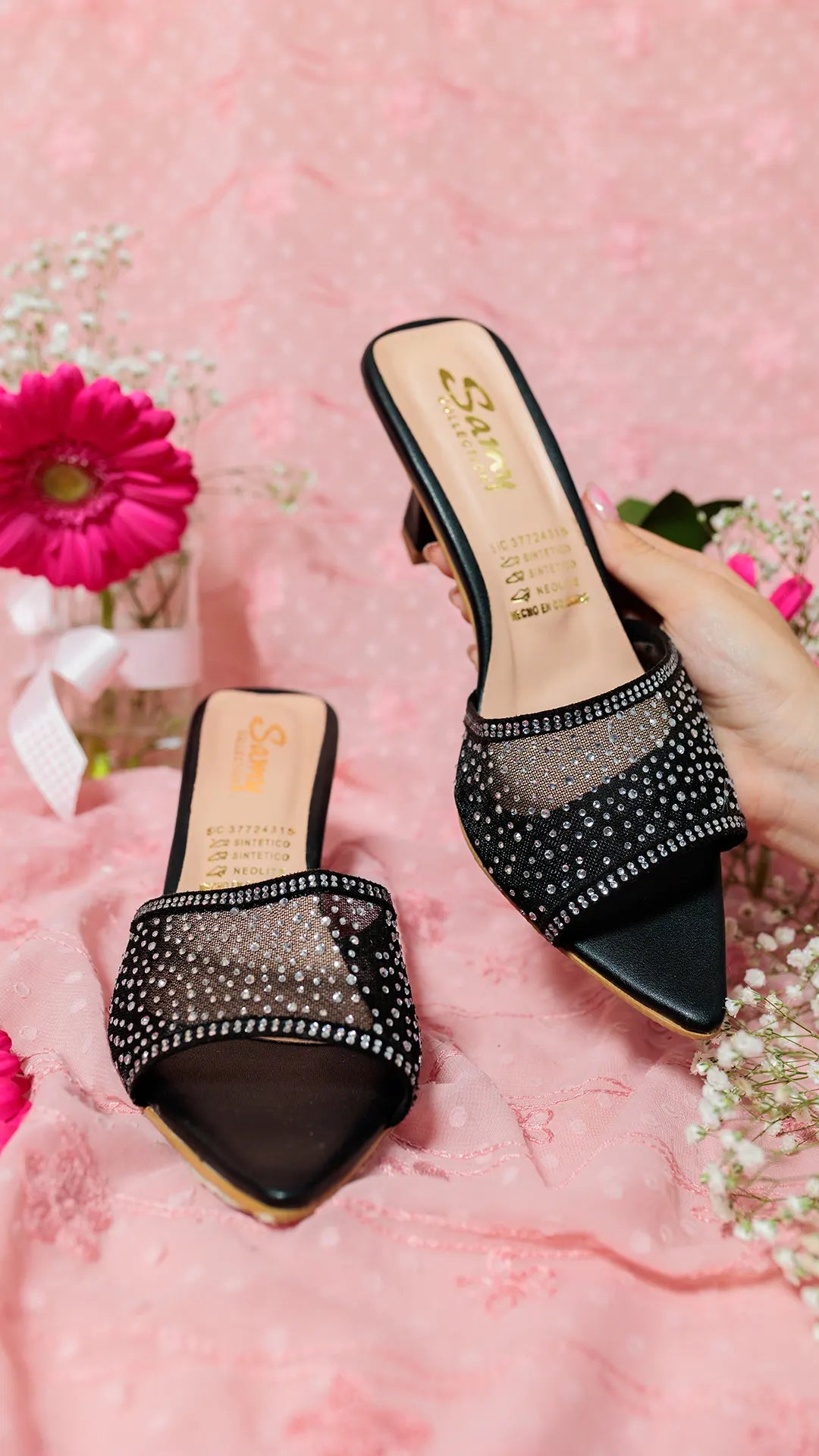 Tacón elegante diseñado para la mujer moderna que busca sofisticación y comodidad. Este modelo Z356 destaca por su delicada pedrería que captura la luz con cada paso, añadiendo un toque de brillo y distinción a cualquier atuendo. Con una altura de 5 1/2 cm, ofrece la elevación perfecta sin comprometer la estabilidad, ideal para eventos especiales o para elevar tu look diario. Una opción versátil que combina estilo y practicidad en un solo diseño.