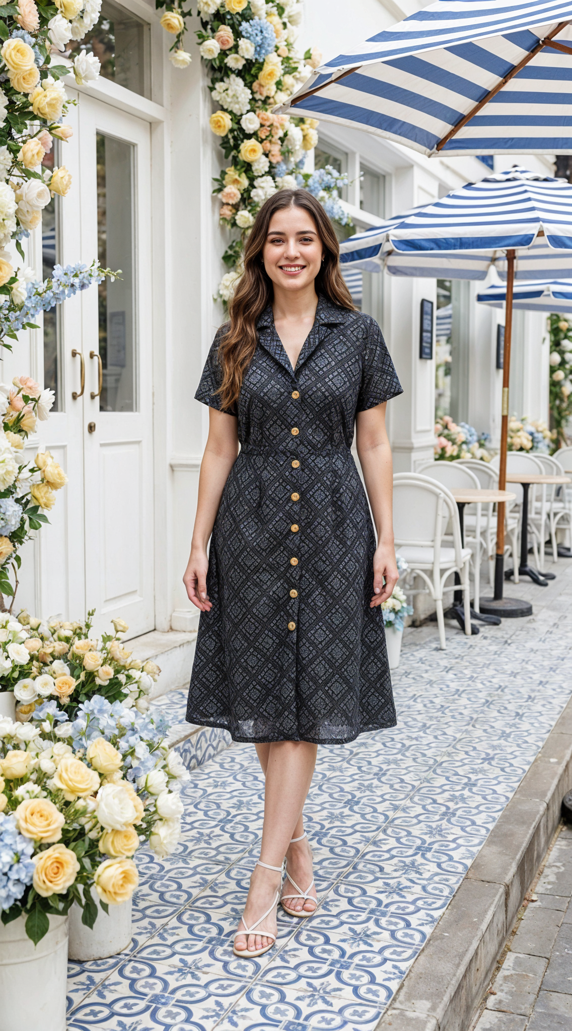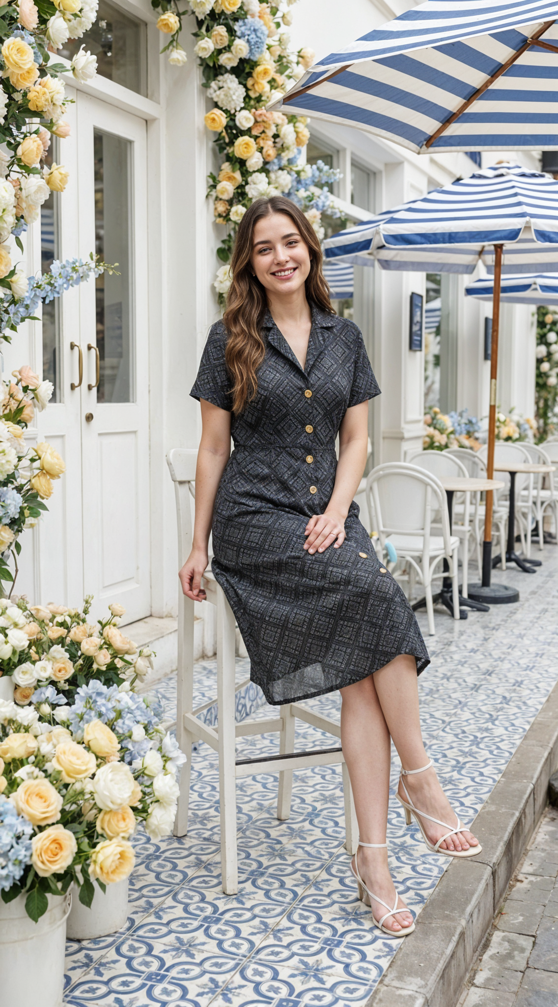 Elegante vestido largo para dama con manga pasada que combina comodidad y sofisticación. Su silueta semi-ajustada realza la figura de manera favorecedora, mientras que los botones delanteros añaden un detalle funcional y moderno. Confeccionado en negro atemporal, este diseño versátil es perfecto para ocasiones especiales o eventos formales. Incluye forro interior para mayor comodidad y durabilidad. La modelo viste talla 8, ideal como referencia para tu compra.