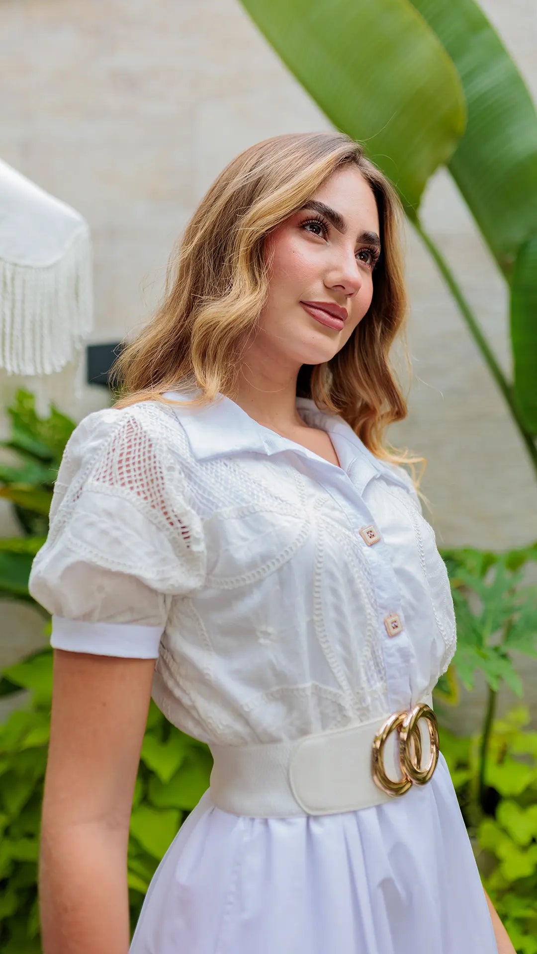 Vestido dama elegante con mangas 3/4 en tela torchón que realza tu figura con una silueta semi-ajustada. Diseño sofisticado con botones decorativos en el delantero que añaden un toque de distinción. Su color blanco impecable es versátil y atemporal, perfecto para ocasiones especiales o uso diario elevado. Cómodo y favorecedora, esta prenda se adapta a diferentes tipos de cuerpo. La modelo viste talla 8, ideal como referencia para encontrar tu ajuste perfecto.